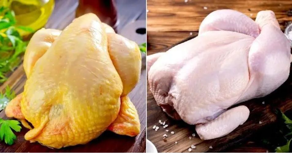 На самом деле, настоящая домашняя курица может иметь лишь легкий желтоватый оттенок, если ее кормили кукурузой или травой, что совершенно не сопоставимо с ярким цветом, полученным за счет химии.