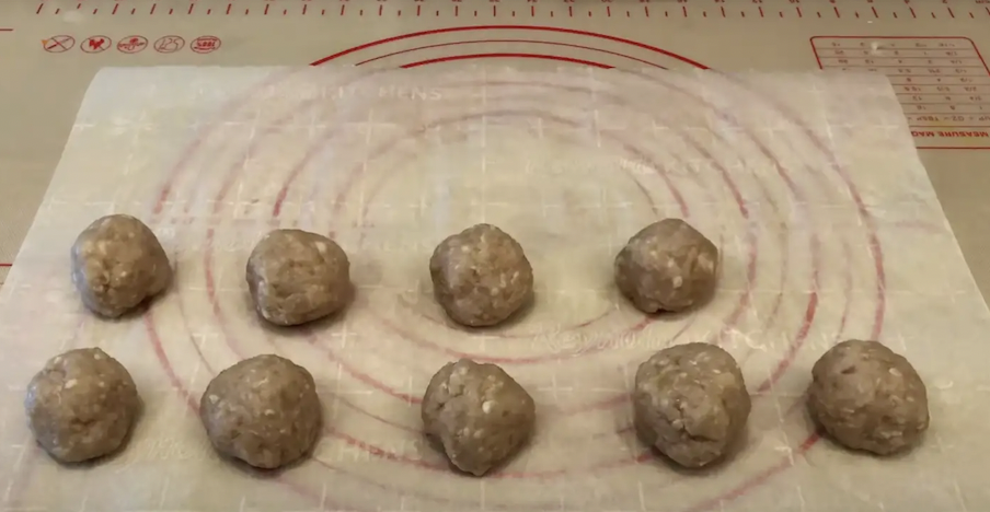 Начать следует с фарша: в него добавляют соль и перец, после чего формируют небольшие шарики.
