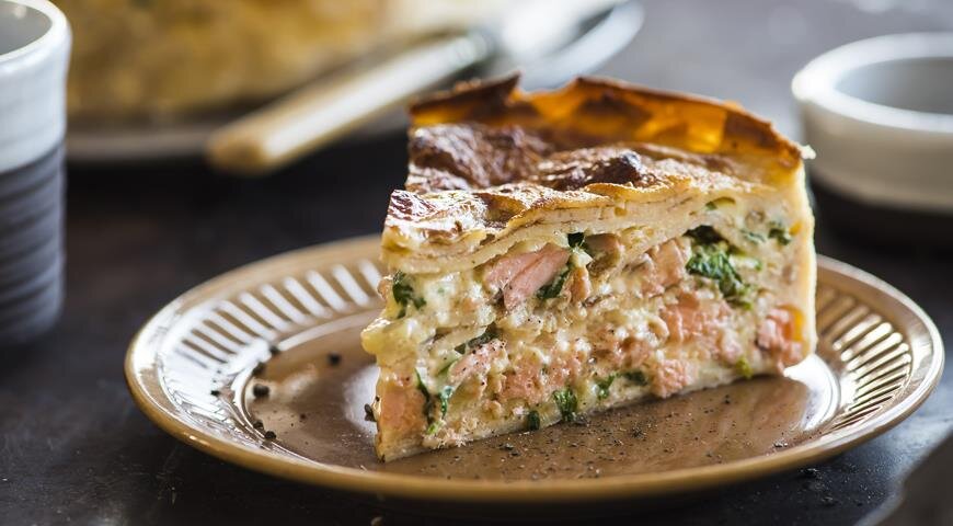 Блинный пирог с рыбой — это отличный выбор для уютного семейного ужина или встречи с друзьями. Главное в этом блюде — простота приготовления, которая позволяет сэкономить время, не отказываясь от вкусной еды. Для удобства можно использовать готовые блины, купленные в магазине, но, конечно, самые вкусные получаются из домашних заготовок. Можно сделать блины и начинку заранее, а в день подачи нужно будет всего лишь быстро собраться и поставить пирог в духовку. Всего за 30–40 минут получится аппетитное и сытное блюдо, которое покорит сердца всех гостей, пишет Дзен-канал "ГАСТРОНОМ.РУ".