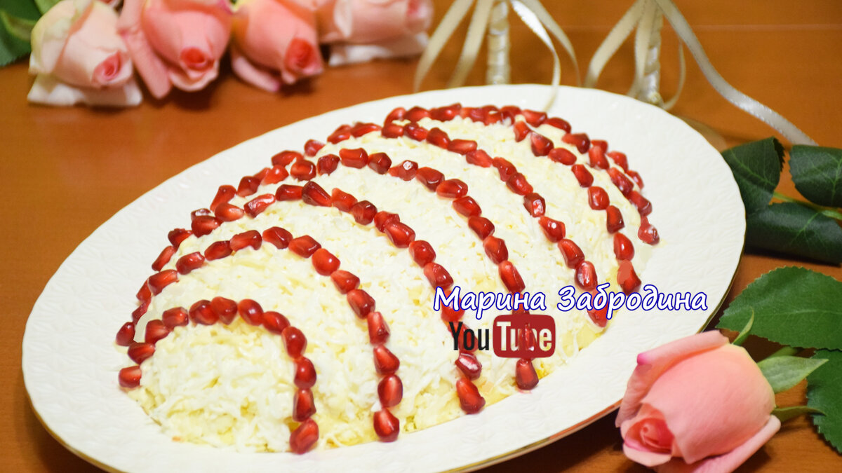 Завершите белками и украсьте зернами граната, придавая вашему блюду праздничный вид.