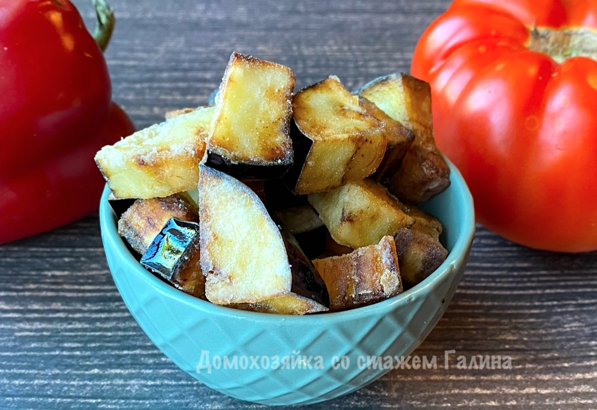 Перед началом готовки баклажан необходимо тщательно промыть и обсушить. Затем он режется на крупные кусочки – мелкие не подойдут, так как они могут потерять форму во время жарки.