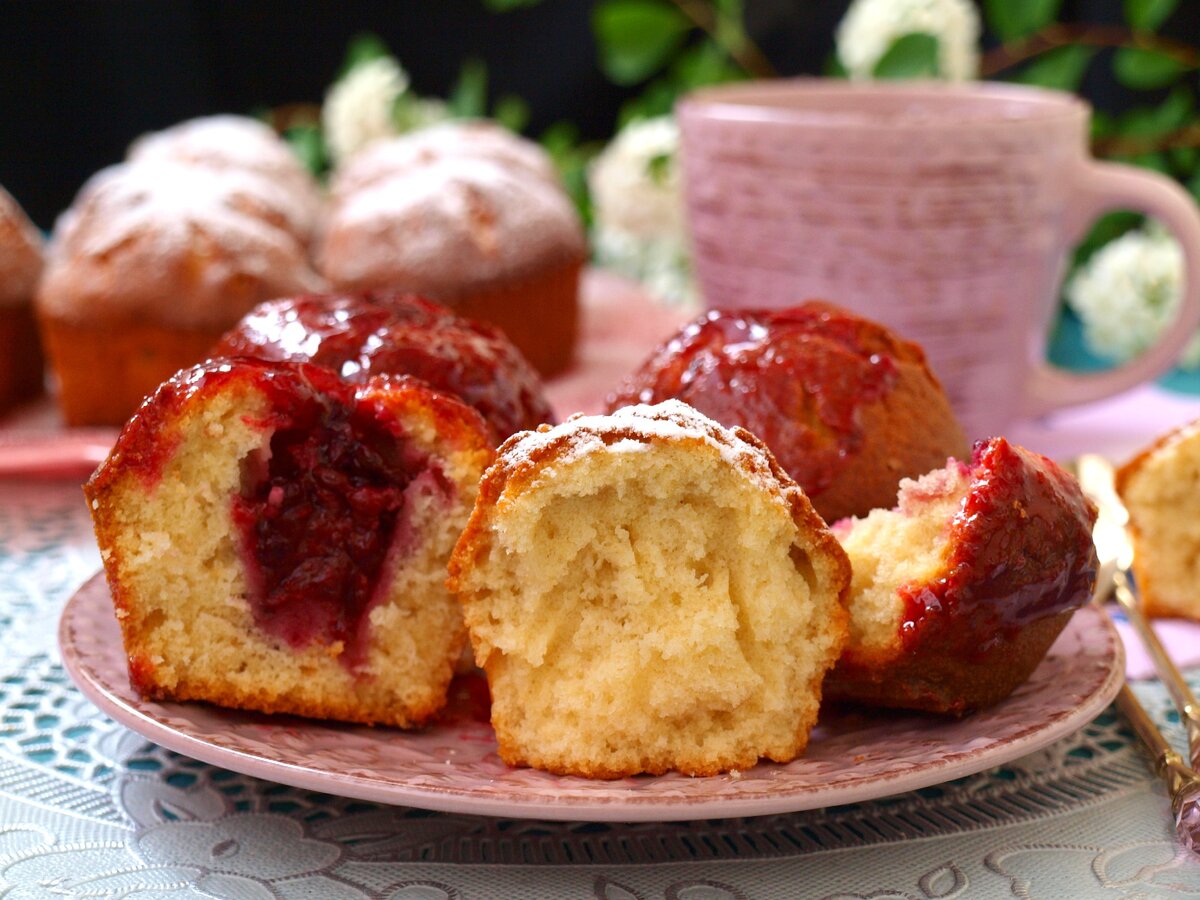 7. Готовые кексы следует охладить и украсить по желанию: посыпать сахарной пудрой или покрыть джемом.