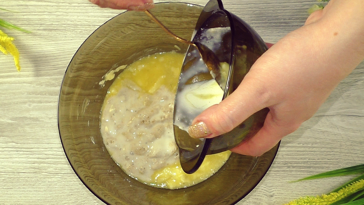 Для начала в миске с тёплым молоком соединить 1 ст. л. сахара, дрожжи и 1 ст. л. муки. Перемешать и дать активироваться. Затем в отдельной посуде взбить яйца с ванильным сахаром, добавить масло и щепотку соли. Как только опара поднимется, соединить её с яичной смесью.
