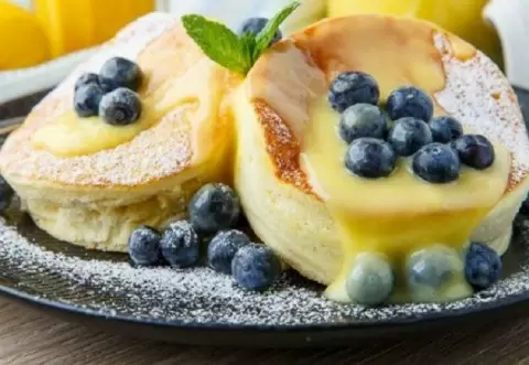 Следует подавать блинчики теплым, полив медом, сгущенкой или сиропом. Также отлично подойдут взбитые сливки, заварной крем и свежие ягоды.