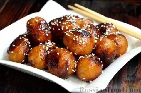 Одно из наиболее интересных блюд — это жареная молодая картошка в медово-соевом соусе. Сочетание сладости меда и солености соевого соуса придает картофелю пикантность и яркость. Для его приготовления картофель обжаривается с чесноком и перцем, а потом глазируется на сковороде до золотистой корочки. В результате получается хрустящая наружная часть и нежная сердцевина, что делает это блюдо идеальным гарниром или самостоятельным угощением.