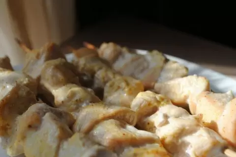 Для начала, деревянные шпажки рекомендуется замочить в воде на 20–30 минут, чтобы избежать их сгорания во время запекания и предотвратить пересушивание мяса.После этого нарезать куриное филе на кубики размером примерно 2 см и замариновать в смеси кефира с пряностями на то же время.По истечении времени, нанизать кусочки курицы на шпажки и разместить их в форме, предварительно смазанной оливковым маслом.Духовку разогреть до 190 градусов по Цельсию и запекать шпажки сначала под фольгой в течение 20 минут, а затем убрать фольгу, чтобы курица подрумянилась.