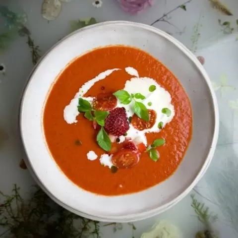 С приходом теплых дней на кухонных столах всё чаще появляются легкие и освежающие блюда. Одним из таких ярких представителей является холодный гаспачо, который можно украсить оригинальными ингредиентами, такими как страчателла и свежая клубника. Данный суп идеально подходит для летнего меню, он радует как вкусом, так и цветом.