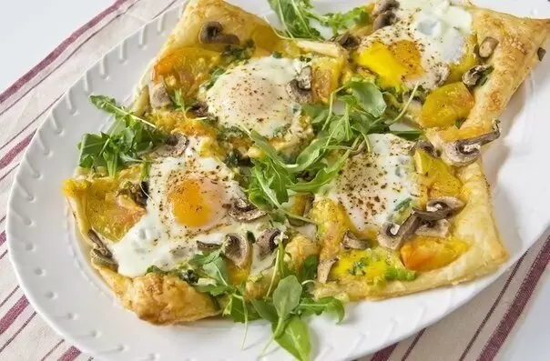 Яичница на слоёном тесте: вкусный и простой рецепт