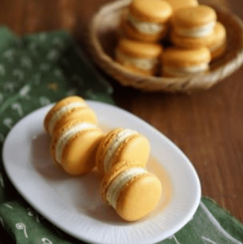 Для начала взбить яичные белки в миске миксера до образования пены. Постепенно добавляя сахар, продолжать взбивать на средней скорости, пока не получится блестящая меренга с устойчивыми пиками. Добавить пищевые красители и взбивать до равномерного окрашивания. На завершающем этапе увеличить скорость и взбивать до консистенции, которая хорошо держит форму.Смешать миндальную муку с сахарной пудрой и аккуратно ввести в меренгу. Лопаткой перемешивать от краев к центру, добиваясь однородной массы. Пусть тесто медленно стекает с лопатки, образуя ленту.Перелить тесто в кондитерский мешок с круглым наконечником. Подготовить противень, выстелив его пергаментом, и выдавить круги диаметром 3-4 см, оставляя между ними расстояние в 2 см. Дать подсохнуть около 40 минут, пока на поверхности не образуется корочка.Разогреть духовку до 145 градусов и выпекать макароны 13 минут. После этого вынуть противень и дать макаронам остыть.Пока остывают половинки меренги, приготовить крем. Очистить грушу и нарезать. Размягчить в микроволновке 3-5 минут. Затем поставить в блендер вместе с сахарной пудрой и перемешать до состояния пюре.В чаше миксера взбить творог, сливки и сахар до кремообразной консистенции. Ввести грушевое пюре и ваниль, взбить до однородности. Если крем не достаточно густой, охладить его в холодильнике на час.Снова используя кондитерский мешок, заполнить половинки пирожных кремом, прижимая их сверху друг к другу. Заполнить оставшиеся макароны кремом.Готовые макароны можно подержать в холодильнике минут 60 или сразу наслаждаться.
