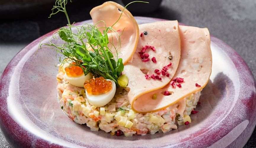 Секрет идеального «оливье» кроется в одинаковом размере нарезки продуктов, подчеркивает шеф-повар Александр Журкин. Ингредиенты можно разнообразить: вместо колбасы подойдут телячий язык, говядина, курица или морепродукты. В его ресторане традиционное «оливье» заправляют соусом Цезарь, но классический вариант остаётся неизменным.