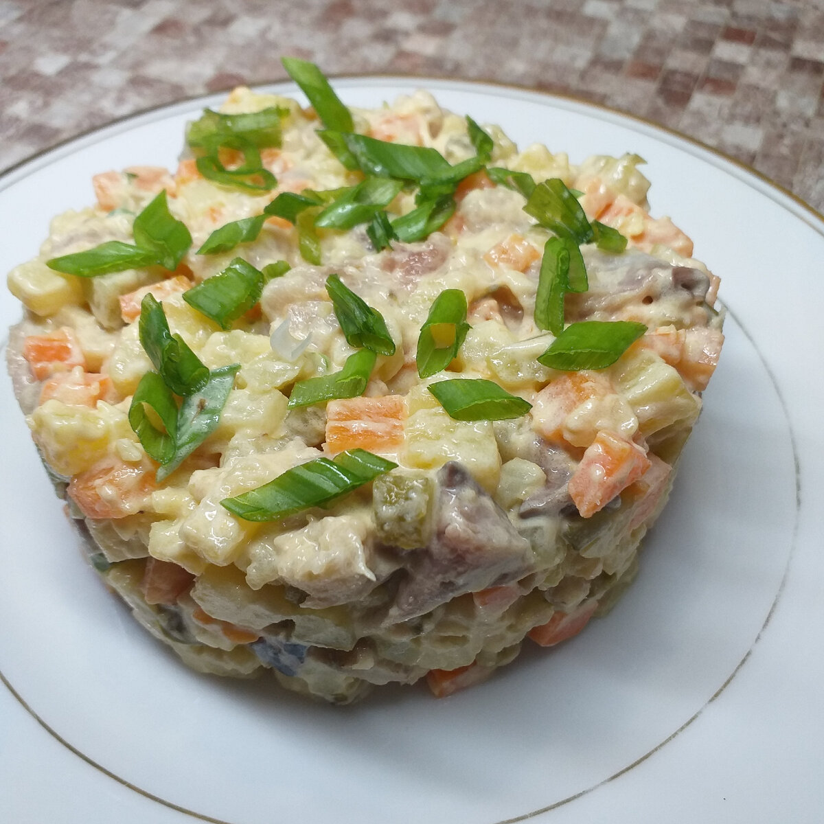 Основные ингредиенты включают отварной картофель, морковь, солёные огурцы, свежий зелёный лук и, конечно же, копчёную скумбрию. Особая заправка на основе майонеза и соевого соуса придаёт блюду уникальный вкус и незабываемый аромат.
