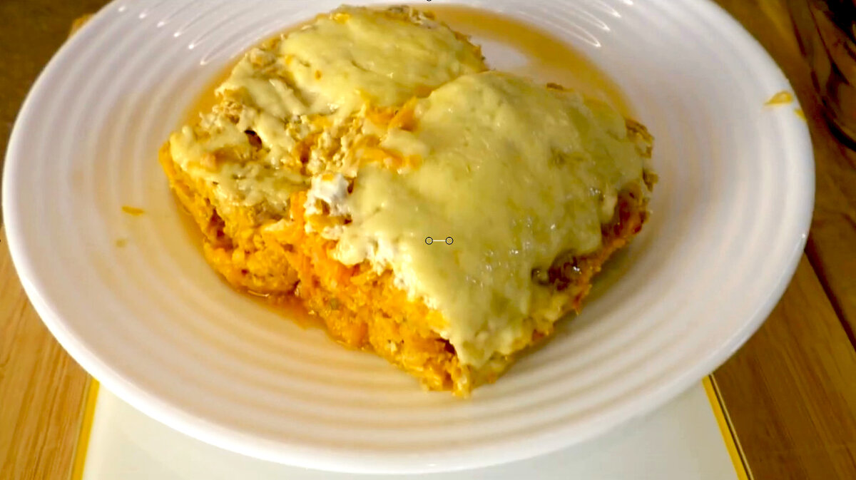 Отправьте запеканку в заранее разогретую до 200 градусов духовку на 40 минут. Для куриного или индюшачьего фарша время приготовления можно сократить до 30 минут. По прошествии времени посыпьте на блюдо натертый сыр и верните в духовку еще на 10 минут для расплавления сыра.