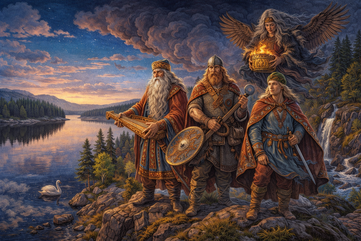 Эпос «Калевала» охватывает широкий спектр тем — от сотворения мира до приключений его героев. Главный персонаж, мудрец и певец Вяйнямёйнен, олицетворяет магию слова и знания. Северная культура придаёт слову особую силу, что ярко проявляется на протяжении всего произведения. Также важную роль играют такие персонажи, как кузнец Ильмаринен и трагический фигур Куллерво, а также противостояние за волшебную мельницу Сампо. Каждый из этих сюжетов не только захватывает, но и раскрывает важные темы чести, труда и ответственности.