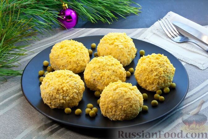 - Шарики «Оливье» — традиционный оливье в новаторской форме. Эти закусочные шарики не просто выглядят стильно, они добавят праздничное настроение!