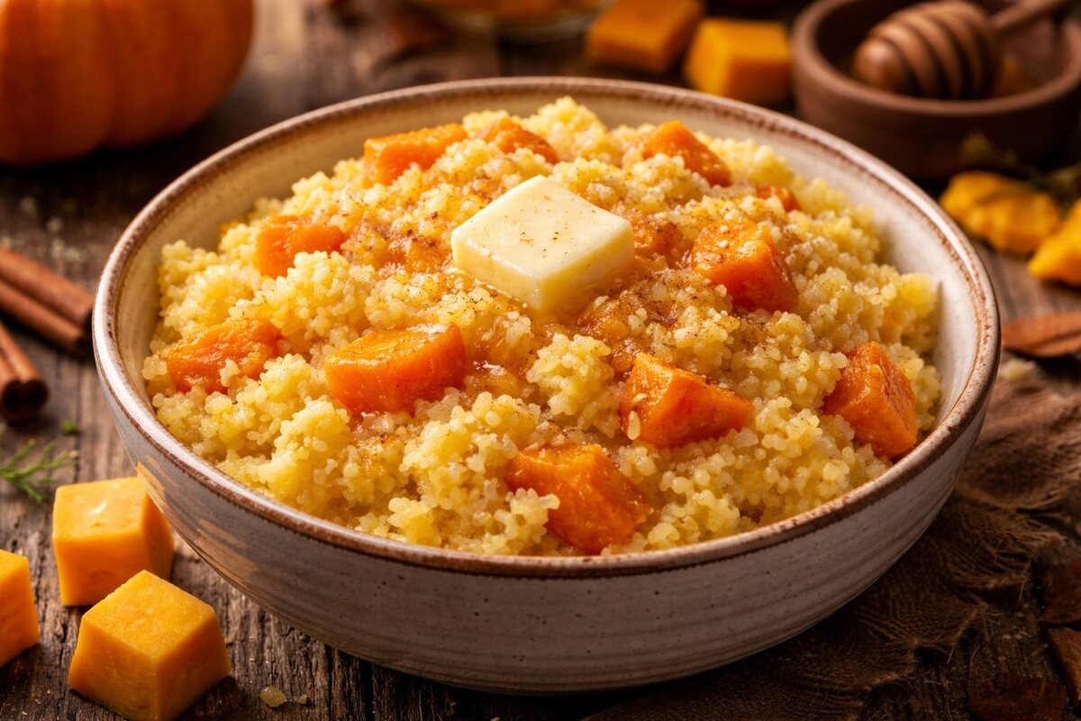 Для более кремовой текстуры можно слегка размять часть тыквы в каше — получится почти десерт.