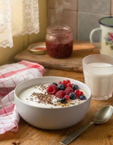 Добавить семена льна в рацион можно довольно просто — например, их можно смешать с готовыми блюдами. Вот один из быстрых и полезных завтраков: