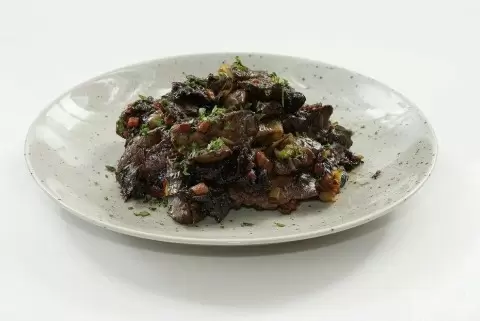 Сначала подготовить все ингредиенты: тщательно очистить печень и разместить ее на бумажном полотенце, чтобы удалить лишнюю влагу.Мелко нарезать морковь и половину репчатого лука.На сковороде разогреть растительное и сливочное масла, после чего обжарить овощи до золотистого цвета.Чернослив порезать на 3-4 части и добавить к овощной смеси – он сделает блюдо более насыщенным, добавив сладковатый привкус.Посолить, поперчить и добавить куриную печень. Быстро обжарить со всех сторон на высоком огне, аккуратно мешая силиконовой лопаткой, чтобы не повредить продукт.Для улучшения аромата (по желанию) можно добавить бурбон, поджечь его, а затем тушить под крышкой несколько минут.Блюдо готово к подаче! Этот рецепт прекрасно подходит для любого случая и точно скрасит вечер.