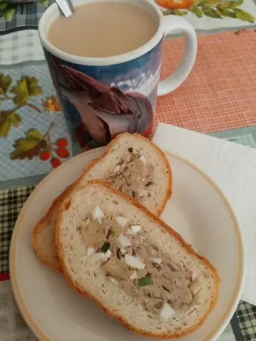 Отваренные яйца нарезаются кубиками, а батон — интересным образом: отрезаются «горбушки», которые дети с удовольствием съедят, а серединка аккуратно вынимается для начинки. Внутрь хлеба выкладывается обжаренный лук, затем добавляется скумбрия и нарезанные яйца. Все ингредиенты тщательно перемешиваются и затем «упаковываются» в батон. Чудесное сочетание вкусной начинки и свежего хлеба также отлично подойдет для хранения в холодильнике, позволяя хлебу насытиться ароматами.