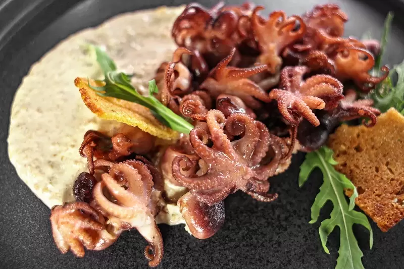 Мини-осьминоги становятся настоящим украшением любой трапезы, представляя собой любимое блюдо средиземноморской кухни. Эти нежные морепродукты, правильно приготовленные, требуют минимального времени, но их удивительный вкус с остротой соуса сделает их настоящей звездой стола. Блюдо отлично подходит как для праздничного застолья, так и для романтического ужина, сопровождаемого бокалом хорошего вина. Эффектная подача и легкость в приготовлении делают мини-осьминоги идеальным выбором для гастрономического вечера.