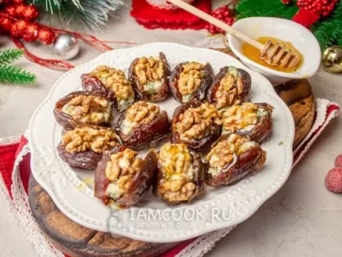 - Финики с сыром: Финики, сыр с плесенью (например, «Дор Блю») и грецкие орехи. Просто нафаршируйте финики сыром, добавив орехи для хрустящей текстуры.