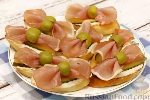 - Бутерброды "Бантики". Эти интересные закуски представляют собой комбинацию нежного творожного сыра, хрустящих маринованных огурцов и аппетитной ветчины. Их оригинальная форма не только радует глаз, но и вызывает желание попробовать их на вкус.