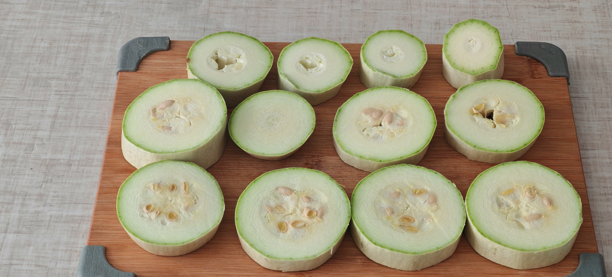 1. Начать стоит с подготовки кабачка: его необходимо тщательно промыть и нарезать на колечки. Не беспокойтесь о размере — различные диаметры придадут блюду характерный вид.