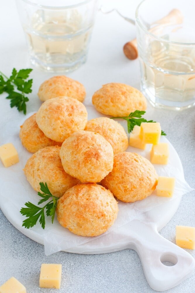 Разогрейте духовку до 200°C и выпекайте сырные шарики 5-7 минут. Затем убавьте температуру до 180°C и продолжайте выпекать до золотистой корочки.